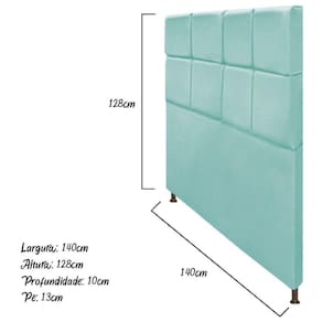 Cabeceira Damares 140 Cm Casal Com Botonê Suede Azul Tiffany - Azul Claro