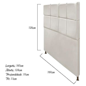 A Cabeceira Damares deixa sua decoração impecável! Além de, agregar cor e luxuosidade ao seu ambiente, ela é produzida com materiais de alta qualidade! Não perca essa oportunidade! Especificações Técnicas da Cabeceira Estofada Damares: - Altura: 128 cm; - Largura: 160 cm; - Profundidade: 10 cm; - Peso: 20 kg. Diferenciais da Cabeceira Estofada Damares: - Material da Estrutura: fabricado com Madeira Pinus e Eucalipto Reflorestada, e alguns detalhes em MDF; - Detalhes do Tecido: possui detalhes em botonê, onde os botões são revestidos no mesmo tecido do produto e finalizados com excelente acabamento; - Detalhes dos Pés: acompanha kit de pés (2 pés) com alta resistência; - Volumes: nessa compra você receberá um único produto. Recomendações de limpeza: -Limpar com flanela limpa e seca. Não molhar o móvel e não expor em lugar úmido ou próximo de fontes de calor. Não usar produtos abrasivos. Observações Importantes: - As imagens ambientadas são meramente ilustrativas e podem apresentar itens que não compõe o produto; - Objetos decorativos que aparecem na foto não acompanham o produto; - As cores do produto podem variar de acordo com o monitor, a iluminação do ambiente, ou sua percepção visual; - A Cabeceira Estofada Damares chegará montada para você, bastando rosquear os pés; - Confira as dimensões antes da compra e certifique-se de que o produto passará por elevadores, portas e corredores, já que nossa entrega não inclui a subida de lances de escada, ou o lançamento de produtos; - Ao receber seus produtos, verifique no ato do recebimento qualquer dano na embalagem. Caso tenha alguma avaria, favor não assinar o comprovante de recebimento (A transportadora tem obrigação de esperar a conferência); - Produto para uso residencial em ambiente interno, não devendo ficar exposto diretamente ao sol, calor e umidades excessivas.