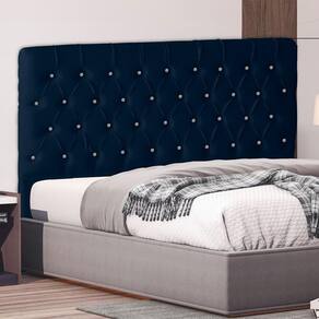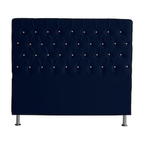 Cabeceira De Cama Box Paris King 195 Cm Botão Strass Suede Azul Marinho Eli Móveis
