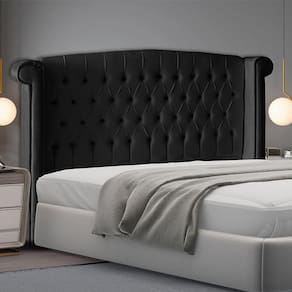 Essa cabeceira casal estofada é um luxo só, isso porque o seu design curvo somado aos botões revestidos cria um ambiente clássico e charmoso.