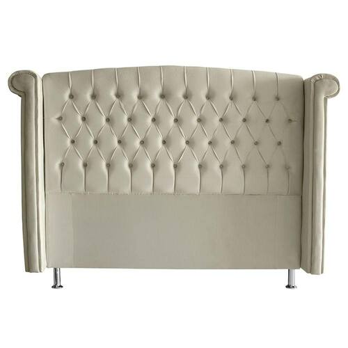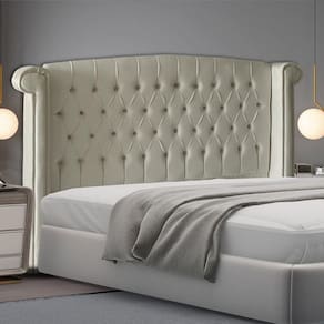 Essa cabeceira casal estofada é um luxo só, isso porque o seu design curvo somado aos botões revestidos cria um ambiente clássico e charmoso.