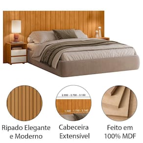 Dimensões da Cabeceira em MDF Ripada Extensível 8 Pés 2 Nichos: