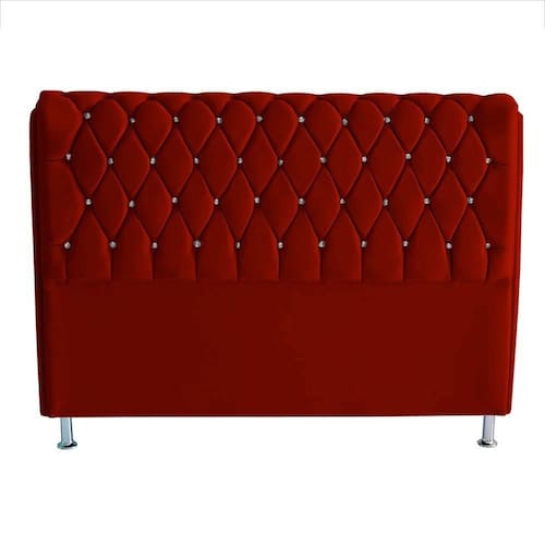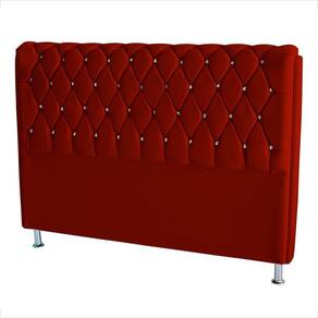 Cabeceira De Cama Jully Casal 140 Cm Botão Strass Suede Vermelho Do Lar Móveis
