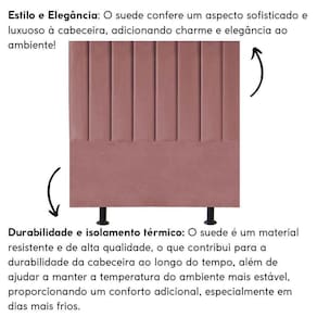 Fabricada com materiais de alta qualidade, como madeira eucalipto e revestimento em suede, esta cabeceira é durável e resistente, garantindo não apenas estilo, mas também funcionalidade para o seu ambiente.