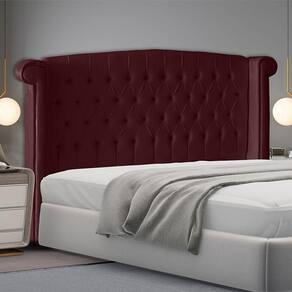 Essa cabeceira casal estofada é um Luxo só, isso porque o seu design curvo somado aos botões revestidos cria um ambiente clássico e charmoso.