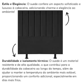 Fabricada com materiais de alta qualidade, como madeira eucalipto e revestimento em Suede, esta cabeceira é durável e resistente, garantindo não apenas estilo, mas também funcionalidade para o seu ambiente.
