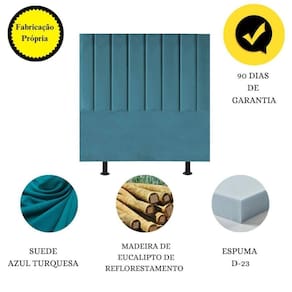 Fabricada com materiais de alta qualidade, como madeira eucalipto e revestimento em suede, esta cabeceira é durável e resistente, garantindo não apenas estilo, mas também funcionalidade para o seu ambiente.