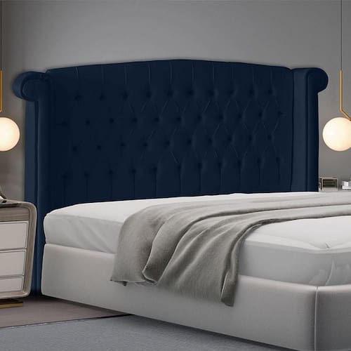 Essa cabeceira casal estofada é um Luxo só, isso porque o seu design curvo somado aos botões revestidos cria um ambiente clássico e charmoso.