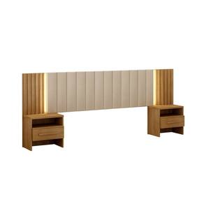 Essa linda cabeceira Los Angelis possui regulagem para colchão de casal e queen, além de 02 mesas de cabeceiras com gavetas com corrediças telescópicas, e todo o seu charme com painel ripado, encosto aveludado e conta também com iluminação de LED para trazer o requinte ainda mais ao seu móvel. Produto Montado: Sim Acabamento da Mesa de Cabeceira: Verniz Ambiente Principal: Quarto Cabeceira Estofada: Sim codigo_ean: 7900288226105 Complexidade da Montagem: Média: pode ser montado por mais de uma pessoa e/ou necessite de maior conhecimento para montagem Cor: Cumaru Cor do Produto: Cumaru Densidade da Espuma: D-20 Escala de Brilho: Fosco Escala de Brilho da Mesa de Cabeceira: Fosco Extensível: Sim Fixação Box: Não Fixação na Parede: Não Itens Inclusos: 1 Cabeceira, Kit Ferragens e Manual de Montagem Largura do Colchão Indicado: 138cm/158cm Largura Máxima: 259 cm Largura Mínima: 239 cm Linha ou Coleção: Los Angelis Manual de Montagem e Instalação: https://product-hub-prd.madeiramadeira.com.br/270772001/documents/f07eb5ba-44e4-4d19-8b81-921ae777161e3122392413217545894954954.pdf Marca: Novo Horizonte Material da Mesa de Cabeceira: MDF/MDP Material Principal: MDF/MDP Necessita Montagem: Sim Origem do Produto: Nacional Peso: 57 kg Possui Baú: Não Possui Espelho: Não Possui Mesa de Cabeceira: 02 Possui Pés: Não Possui Vidro: Não Recomendações de Uso, Manutenção e Limpeza: pano úmido, sem uso adicional de produto abrasivos Sistema de Montagem: Parafusos, ferragens e entre outros. Tipo de Colchão: Casal/Queen