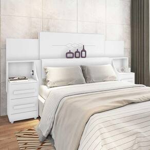 Cabeceira De Casal Extensível Síria Branco - Rv Móveis A Cabeceira de Casal Síria - RV Móveis é o produto mais indicado para quem deseja beleza e conforto enquanto aproveita seu momento de descanso. Possui dois criados com gavetas com corrediças telescópicas e puxadores em MDF, além de tomadas embutidas. Conta também com design moderno, sem deixar de lado requinte e sofisticação.Dimensões do Produto Montado:Altura: 137,5 cmLargura: 227/247/267 cmProfundidade: 37 cmObservações:- Adaptável para box de 1,40, 1,60, 1,90 e 2m;- Painéis em MDF;- Criados com Corrediças telescópicas;- Puxadores em MDF;- 2 Tomadas inclusas;- Pintura Ultravioleta com acabamento brilho.