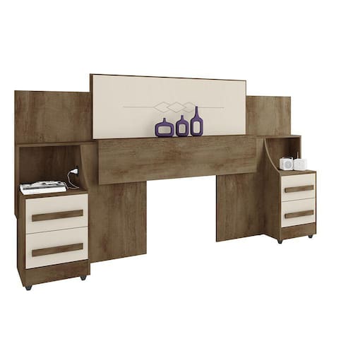 A Cabeceira de Casal Síria é o produto mais indicado para quem deseja beleza e conforto enquanto aproveita seu momento de descanso. Possui dois Mesa de Cabeceira com gavetas com corrediças telescópicas e puxadores em MDF, além de tomadas embutidas. Conta também com design moderno, sem deixar de lado requinte e sofisticação.