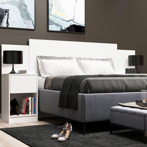 A cabeceira de casal da Moveis Sim harmoniza o seu quarto e traz a praticidade de ter ao seu lado uma mesa de cabeceira para organizar aqueles pequenos itens que são só seus. Ganhe conforto e qualidade com esse Móvel 100% em MDP.enbsp;Ideal para camas box e queen size.