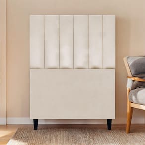 Cabeceira Decorativa Elen Para Cama De Solteiro 90cm Suede Bege, Suede