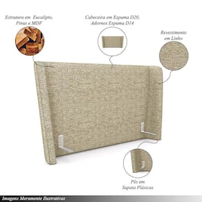 Cabeceira Design Para Cama Queen Torres Pés Em Madeira Linho Bege G91 - Gran Belo