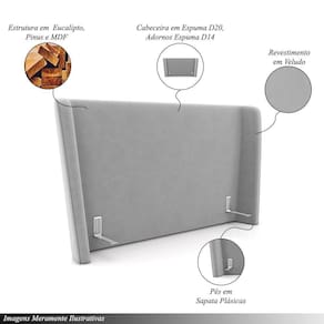 Cabeceira Design Para Cama Queen Torres Pés Em Madeira Veludo Cinza G91 - Gran Belo