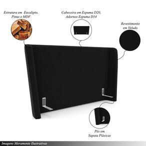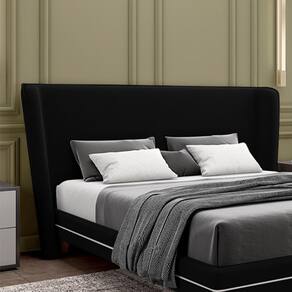 Cabeceira Design Para Cama Queen Torres Pés Em Madeira Veludo Preto G91 - Gran Belo