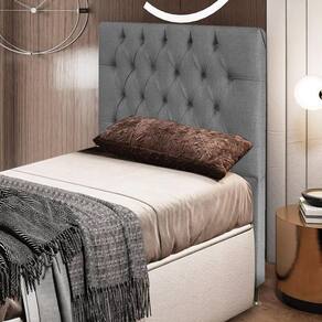 Cabeceira Diamante Cama Box Solteiro 90cm Linho Cinza