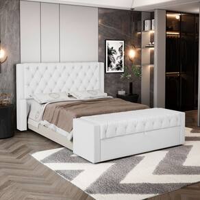 Cabeceira e Calçadeira Báu King Size Atena 195cm Capitonê Sintético Branco - Abmaza