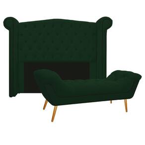 Cabeceira E Calçadeira Veneza 160 Cm Queen Size Suede Verde