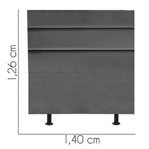- Largura: 140 cm; - Altura: 126 cm; - Profundidade: 11 cm; - Produto estofado; - Produzido em Madeira de Pinus e Eucalipto; - Pés em pvc;
