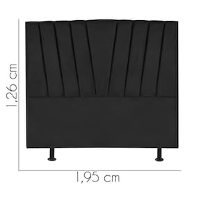 - Largura: 195 cm; - Altura: 126 cm; - Profundidade: 11 cm; - Produto estofado; - Produzido em Madeira de Pinus e Eucalipto; - Pés em pvc;