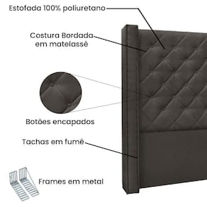 Cabeceira Estofada Box Casal Queen Size Alteza 160cm Cinza - Transparente