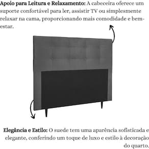 Conforto inigualável: Tecido em suede proporciona toque suave e acolhedor, tornando suas noites de sono ainda mais relaxantes.