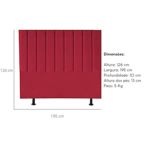 Transforme sua decoração com a elegância da Cabeceira Estofada King Size Carla! Ideal para quem busca estilo e conforto, a Cabeceira Cama King Carla é o toque perfeito para o seu quarto. Com um design único e detalhes que encantam, a Cabeceira Alta Carla é a escolha certa para acompanhar sua cama e garantir momentos de relaxamento ainda mais aconchegantes. Seja para apoiar as costas enquanto lê um livro ou assistir TV, ela proporciona conforto incomparável. Fabricada com materiais de alta qualidade, como madeira eucalipto e revestimento em suede, esta cabeceira é durável e resistente, garantindo não apenas estilo, mas também funcionalidade para o seu ambiente. Não perca tempo! Adquira já a sua Cabeceira Moderna Carla e transforme seu quarto em um espaço ainda mais acolhedor. Aproveite agora mesmo! Dimensões: Altura: 126 cm Largura: 195 cm Profundidade: 10 cm Altura dos pés: 13 cm Peso: 13 Kg Especificações do Produto: Estrutura: Madeira Eucalipto de alta qualidade Tecido: Suede Espuma: D-20 Material dos pés: Plástico Acompanha o kit frame Os parafusos para fixação do frame e os pés serão enviados dentro do forro, na parte de trás da cabeceira Montagem: O produto vai montado, necessitando apenas rosquear os pés (2) Instruções de Limpeza: Utilizar um pano limpo e levemente úmido Você irá receber: 01 volume Observações Relevantes: Produto para uso residencial em ambiente interno, não devendo ficar exposto diretamente ao sol, calor e umidades excessivas; As imagens são meramente ilustrativas, não acompanham objetos de decoração e eletros; Cabeceira Casal Cabeceira Queen Cabeceira de cama Cabeceira capitonê Cabeceira king de madeira Cabeceira rústica king Cabeceira retrô king Cabeceira sob medida king Cabeceira king MDF Marca: Black House