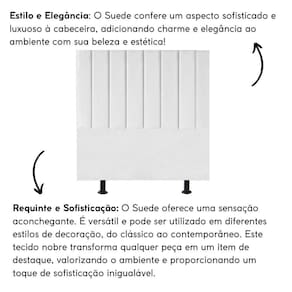 Fabricada com materiais de alta qualidade, como madeira eucalipto e revestimento em suede, esta cabeceira é durável e resistente, garantindo não apenas estilo, mas também funcionalidade para o seu ambiente.