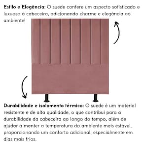 Fabricada com materiais de alta qualidade, como madeira eucalipto e revestimento em suede, esta cabeceira é durável e resistente, garantindo não apenas estilo, mas também funcionalidade para o seu ambiente.