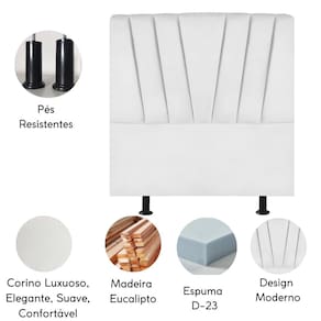 Fabricada com materiais de alta qualidade, como madeira eucalipto e revestimento em corino, esta cabeceira é durável e resistente, garantindo não apenas estilo, mas também funcionalidade para o seu ambiente.