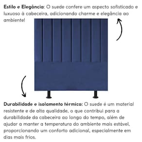 Fabricada com materiais de alta qualidade, como madeira eucalipto e revestimento em suede, esta cabeceira é durável e resistente, garantindo não apenas estilo, mas também funcionalidade para o seu ambiente.