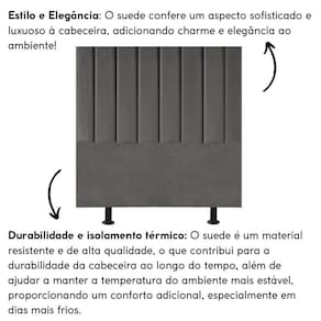 Fabricada com materiais de alta qualidade, como madeira eucalipto e revestimento em suede, esta cabeceira é durável e resistente, garantindo não apenas estilo, mas também funcionalidade para o seu ambiente.