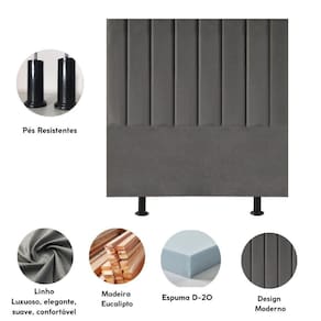 Cabeceira Estofada Cama Box Solteiro 90 Cm Paolla Linho cinza - Blush