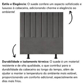 Fabricada com materiais de alta qualidade, como madeira eucalipto e revestimento em suede, esta cabeceira é durável e resistente, garantindo não apenas estilo, mas também funcionalidade para o seu ambiente.