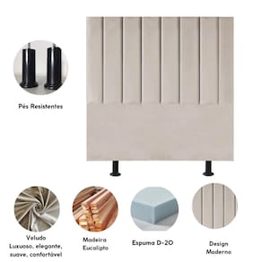 Fabricada com materiais de alta qualidade, como madeira eucalipto e revestimento em veludo, esta cabeceira é durável e resistente, garantindo não apenas estilo, mas também funcionalidade para o seu ambiente.