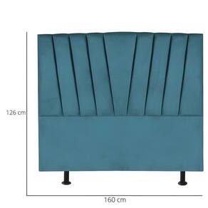 Cabeceira Estofada Cama Casal Queen Size 160 Cm Malu Suede Azul Turquesa