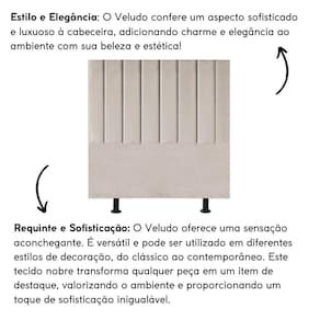 Fabricada com materiais de alta qualidade, como madeira eucalipto e revestimento em veludo, esta cabeceira é durável e resistente, garantindo não apenas estilo, mas também funcionalidade para o seu ambiente.