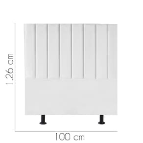 - Largura: 100 cm; - Altura: 126 cm; - Profundidade: 11 cm; - Produto estofado; - Produzido em Madeira de Pinus e Eucalipto; - Pés em pvc;