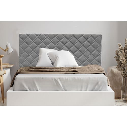 Características: Acabamento revestida em Veludo Estrutura em Madeira Pinus Fixação da cabeceira, sem fixação Tipo de montagem Encostado entre box e parede