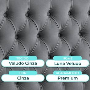 Cabeceira Estofada Casal Luna Nature Veludo Grafite 138x136 Cabeceira casal com 136cm de altura, ideal para dar destaque e elegância ao ambiente Revestida em veludo, com textura aveludada e toque extremamente macio
