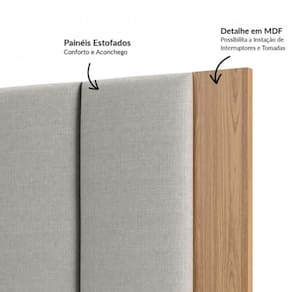 Características: Estrutura 100% MDF Acabamento em Pintura UV Cabeceira Estofada Laterais em MDF Ideal para Colchão de Solteiro (88 cm de largura) e Casal (138 cm de largura) NÃO ACOMPANHA CAMA NÃO ACOMPANHA COLCHÃO