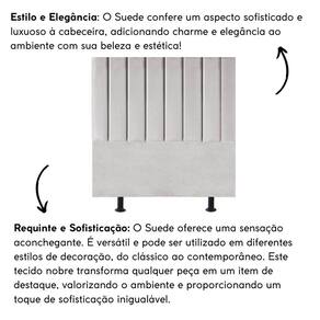 Fabricada com materiais de alta qualidade, como madeira eucalipto e revestimento em Suede, esta cabeceira é durável e resistente, garantindo não apenas estilo, mas também funcionalidade para o seu ambiente.