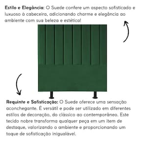 Fabricada com materiais de alta qualidade, como madeira eucalipto e revestimento em Suede, esta cabeceira é durável e resistente, garantindo não apenas estilo, mas também funcionalidade para o seu ambiente.