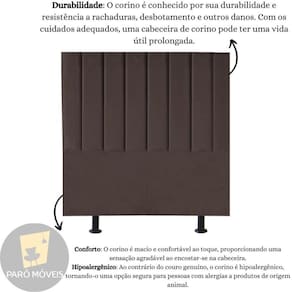 Fabricada com materiais de alta qualidade, como madeira eucalipto e revestimento em corino, esta cabeceira é durável e resistente, garantindo não apenas estilo, mas também funcionalidade para o seu ambiente.