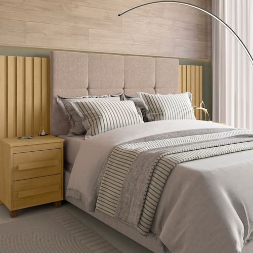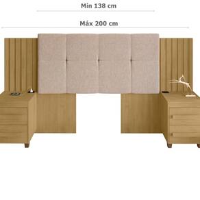 A Cabeceira Suíça é extensível e ajustável, equipada com 2 mesas de cabeceira com gavetas, oferecendo um estilo elegante e imponente. Seu design combina com o painel ripado, proporcionando bom gosto à peça. Além de garantir um upgrade no visual do seu dormitório, ela é perfeita para ler ou usar o celular sem encostar as costas na parede. Com montagem extensível que se adapta a camas box de 138cm a 200cm e mesas de apoio nas laterais, é uma excelente escolha para complementar seu quarto. O apoio central possui 2 opções de regulagem na altura do Capitonê. Quer um ambiente aconchegante e agradável? Compre agora a Cabeceira Suíça! Produto Montado: Sim Acabamento da Mesa de Cabeceira: Pintura Acabamento dos Pés: Pintura Altura dos Pés: 5 cm Altura Máxima dos Pés: 5.0000 Ambiente Principal: Quarto Cabeceira Estofada: Sim codigo_ean: 7909903798126 Complexidade da Montagem: Baixa: pode ser montado por uma pessoa sozinha Cor: Cinamomo Cor do Produto: Cinamomo Cor Flex: Não Escala de Brilho: Fosco Escala de Brilho da Mesa de Cabeceira: Fosco Extensível: Sim Fixação Box: Não Fixação na Parede: Não Informações Complementares: Seguir as Orientações do Manual de Uso e Montagem Itens Inclusos: 1 Cabeceira Extensível com 2 Mesas de Apoio, Kit Ferragens e Manual de Montagem Largura Máxima: 200 cm Largura Mínima: 138 cm Linha ou Coleção: Suíça Manual de Montagem e Instalação: https://product-hub-prd.madeiramadeira.com.br/921279/documents/d430a80b-0a86-4caf-9142-d2b4902e55dc37e9c1355345cabeceirasuica.pdf Material da Mesa de Cabeceira: MDF/MDP Material dos Pés: ABS Material Principal: MDF/MDP Montagem Flex: Não Necessita Montagem: Sim Origem do Produto: Nacional Peso: 44,3 kg Possui Baú: Não Possui Espelho: Não Possui Mesa de Cabeceira: 02 Possui Pés: 08 Possui Rodízio: Não Possui Possui Vidro: Não Recomendações de Uso, Manutenção e Limpeza: Seguir as Orientações do Manual de Uso e Montagem Sapatas Niveladoras: Não Sistema de Montagem: Parafusos, Cavilhas e Miniflix Tipo de Colchão: Casal/Queen/King