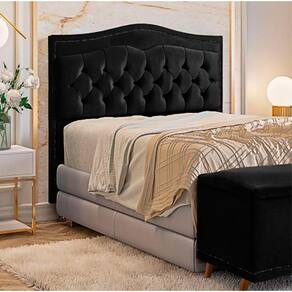 Cabeceira Estofada Holanda 0,90 Solteiro 2.0 Veludo Shop das Cabeceiras - Preto