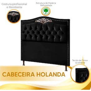 Cabeceira Estofada Holanda 1,40 Casal Veludo Shop das Cabeceiras - Preto