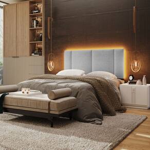 Cabeceira Casal Estofada com Iluminação LED – Ideal para quem busca conforto e modernidade! Nossa Cabeceira de Cama Box com LED é o complemento perfeito para quem busca estilo e funcionalidade. Fabricada com materiais de alta qualidade, essa peça oferece: Design Moderno: Com um design contemporâneo e minimalista, esta Cabeceira de Cama Casal se destaca pelo seu acabamento impecável. Iluminação LED Integrada: A cabeceira vem equipada com uma mangueira de LED quente (amarelo) BIVOLT já com tomada, com uma luz suave e aconchegante, ideal para criar um ambiente relaxante ou para leitura noturna. Medidas Perfeitas: Adequada para cama box casal, a cabeceira possui 140 cm de largura, 60 cm de altura e 5 cm de profundidade. Instalação Simples: Acompanha manual detalhado e todos os acessórios necessários para uma montagem rápida e prática. Material Resistente: Confeccionada com MDF de alta qualidade, garantindo robustez e durabilidade. O revestimento é feito com espuma D-14, proporcionando mais conforto para apoiar as costas. A superfície é revestida em Linho, Veludo ou Bouclé premium. Adquira já e torne seu espaço mais acolhedor e estiloso com nossa Cabeceira de Casal LED. Dimensões Altura: 60 cm Largura: 140 cmProfundidade: 5 cmPeso: 6 Kg Versatilidade e Estilo: Seu design versátil permite que ela se adapte facilmente a diferentes estilos de decoração, desde o moderno até o clássico, trazendo um toque de sofisticação a qualquer quarto. Qualidade e Durabilidade: A escolha de materiais de alta qualidade, como o MDF de 6mm e a espuma de altíssima qualidade, garante que esta cabeceira ofereça não apenas um visual elegante, mas também durabilidade e conforto ao longo do tempo. A iluminação LED de baixo consumo energético adiciona um benefício prático e ecológico, prolongando a vida útil da peça. Observações importantes: - As imagens são ilustrativas, não acompanham objetos de decoração e eletrônicos. - Pode haver alguma diferença de tonalidade entre a imagem e o produto real, por conta do tratamento de imagens e a calibração de cores do seu monitor. cabeceira com led cabeceira de cama casal cabeceira queen cabeceira king cabeceira infantil cabeceira modulada cabeceira modular cabeceira móvel Cabeceira capitonê Cabeceira madeira Cabeceira acolchoada Cabeceira moderna Cabeceira alta Cabeceira rústica Cabeceira sob medida Cabeceira simples Cabeceira estilosa Cabeceira elegante Cabeceira vintage Cabeceira design Design de interiores ripado Marca: Online Confort