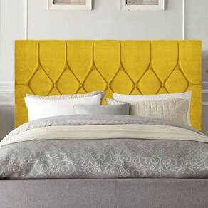 Cabeceira Estofada Istambul Capitonê 160cm Queen Size Box Quarto Corino Amarelo - Gat Magazine